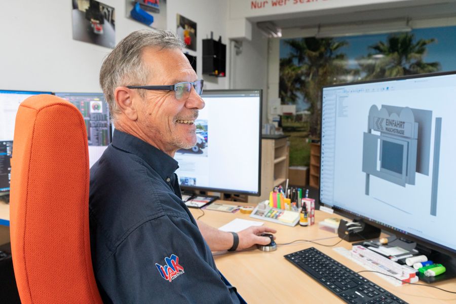 Unser Kundenempfangs- und Ausstellungsbereich, spezielle Fertigungsbereiche für Computerschnitt, Digitaldruck, Laserdruck und CNC-Fräsen, sowie eine sehr geräumige Montagehalle ermöglicht einen maximalen Grad an Logistik. Die beste Grundlagen zur Einhaltung eines hohen Qualitätsstandards. Das Team der LAK lebt und liebt sein Handwerk und fertigt größtenteils alles selbst vor Ort.