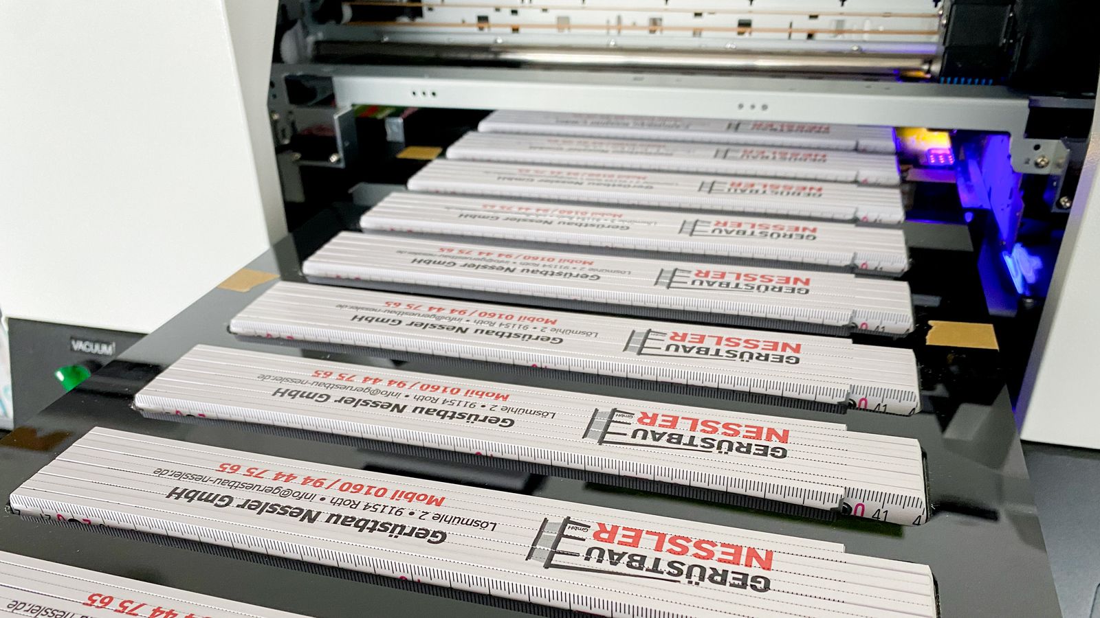 Durch das besondere Druckvorgehen ist der UV-Direktdruck auf fast jedem Material möglich. Außerdem ist er umweltschonend und kann schon in Auflagen von 50-100 Stück gefertigt werden.