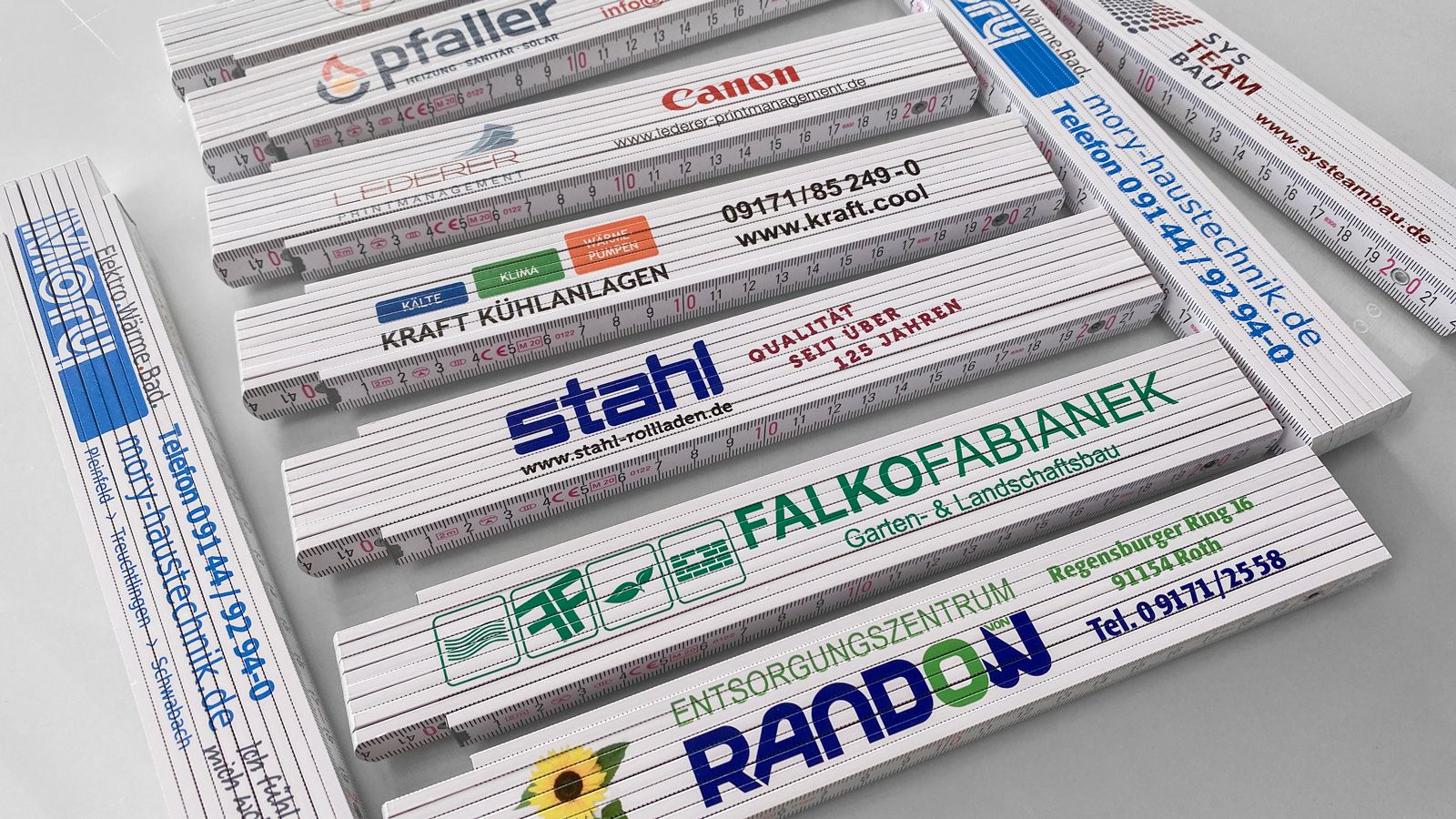 Die Meterstäbe lassen wir gerne bei unseren Kunden. Diese freuen sich und für uns ist es eine super Werbung.